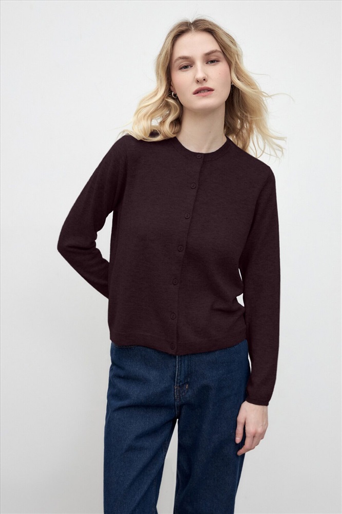 ID товара: 1088348 Состав: Шерсть мериноса 70%, Кашемир 30% Сезон: Демисезон Длина: Средняя Фасон: Прямой Рукав: длинные Вид застежки: Пуговицы Вырез горловины: Округлый Основная ткань: Шерсть Стиль: Повседневный Страна бренда: Россия Страна производства: Россия Уютный базовый кардиган из высококачественной смесовой мериносовой и кашемировой пряжи, рукав полной длины, круглая горловина. Тонкая и легкая шерсть мериноса абсолютно не колется, что позвляет ей стать прекрасной базой как первый слой под жакеты в осенний период. Мериносовая пряжа и кашемир отличаются тонкостью и мягкостью волокна, высокой прочностью, влагопоглощением, а также особыми теплоизоляционными характеристиками. Комментарии к товару