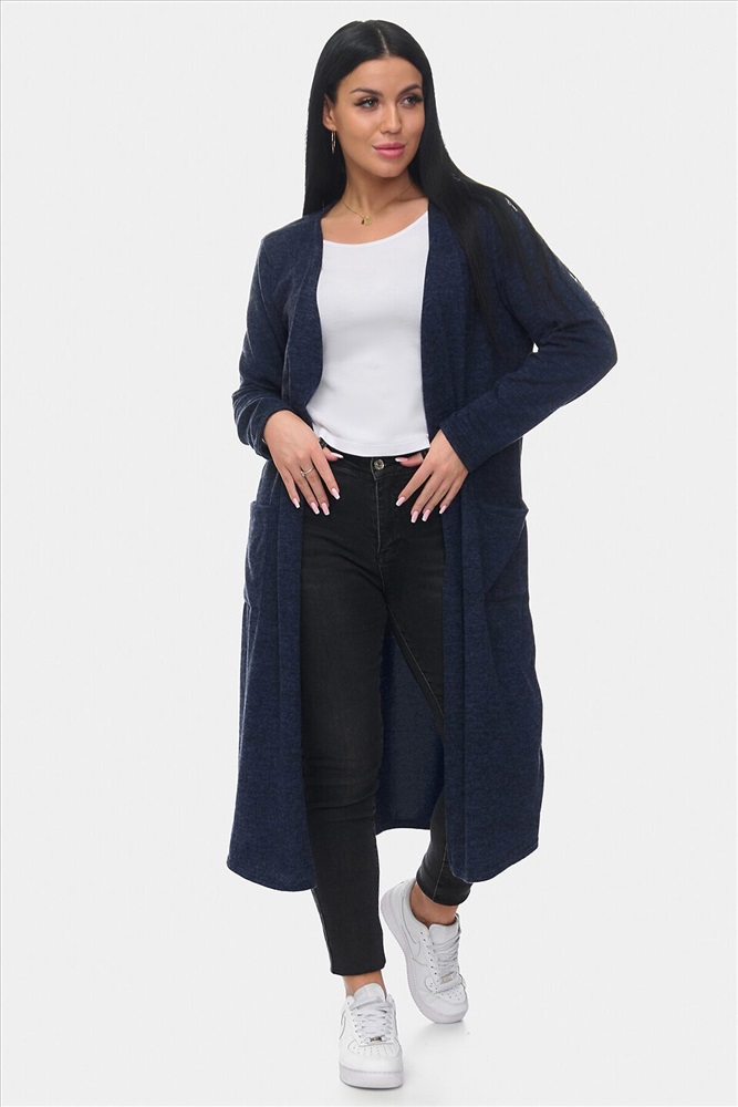 Стильный и уютный длинный кардиган из мягкой ангоры софт. Модель прямого кроя с удобными накладными карманами и открытой линией переда. Приятный на ощупь материал обеспечивает комфорт и тепло, идеально подходит для повседневных образов. Отлично сочетается с джинсами и брюками.
