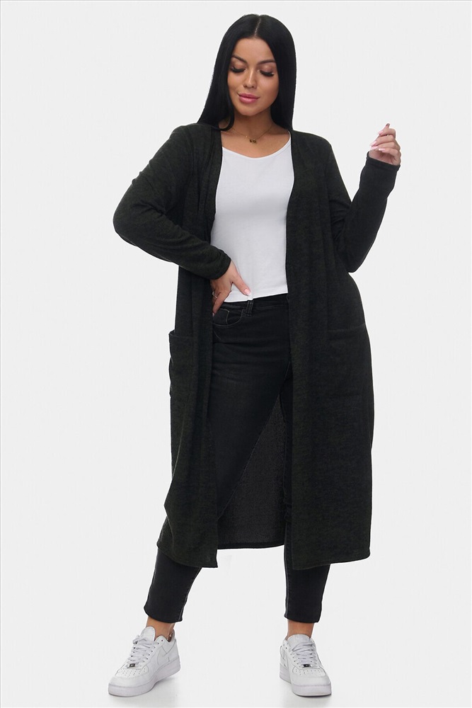 Стильный и уютный длинный кардиган из мягкой ангоры софт. Модель прямого кроя с удобными накладными карманами и открытой линией переда. Приятный на ощупь материал обеспечивает комфорт и тепло, идеально подходит для повседневных образов. Отлично сочетается с джинсами и брюками.