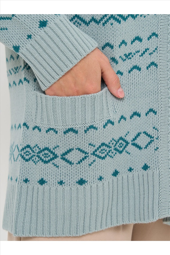 ID товара: 1065663 Состав: ПАН-70%, Шерсть-30%, СОРТ I Сезон: Осень/Зима Длина: Средняя Фасон: Свободный Рукав: длинные Вид застежки: Пуговица Вырез горловины: V-образный Рисунок: Узор Тип карманов: Прорезные Основная ткань: ПАН Стиль: повседневный Страна бренда: Россия Страна производства: Россия Вязаный кардиган с карманами. Комментарии к товару