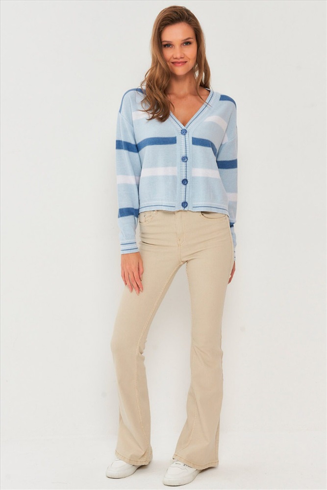 ID товара: 778959 Состав: Хлопок 50%, ПАН 50% СОРТ I Сезон: Весна/Лето Длина: 50 Фасон: Свободный крой Рукав: Длинные Вид застежки: Пуговицы Вырез горловины: V-образный Рисунок: Полоски Основная ткань: Хлопок Стиль: Повседневный Страна бренда: Россия Страна производства: Россия Укороченный вязаный кардиган на пуговицах. Комментарии к товару
