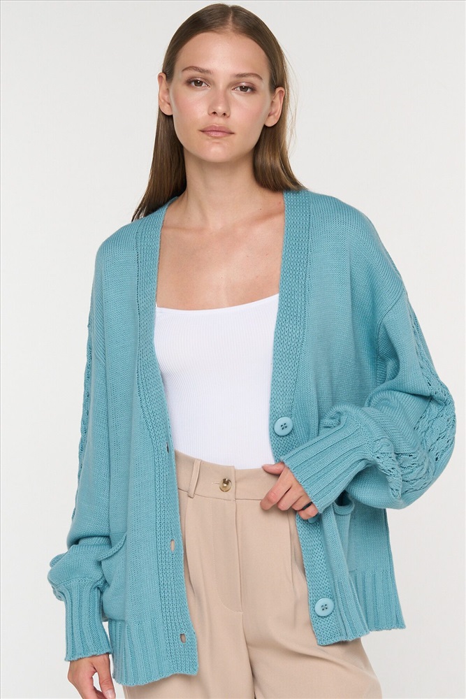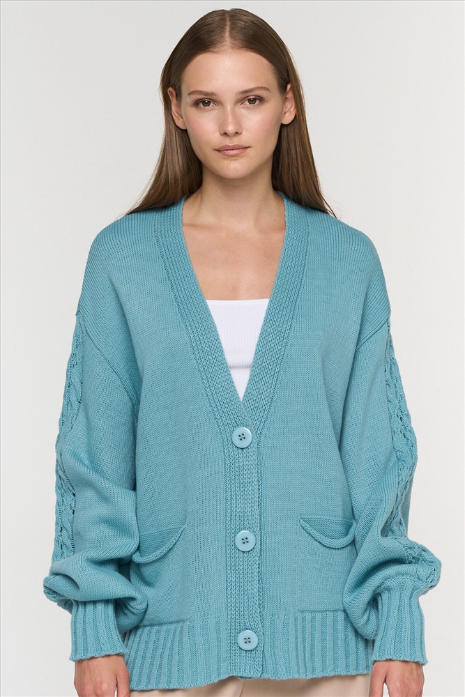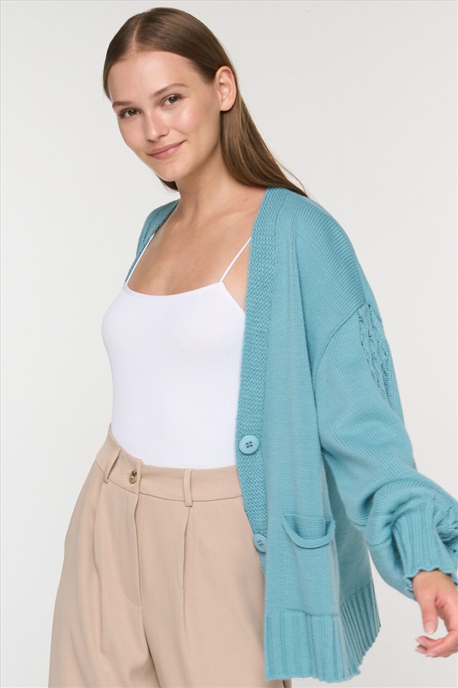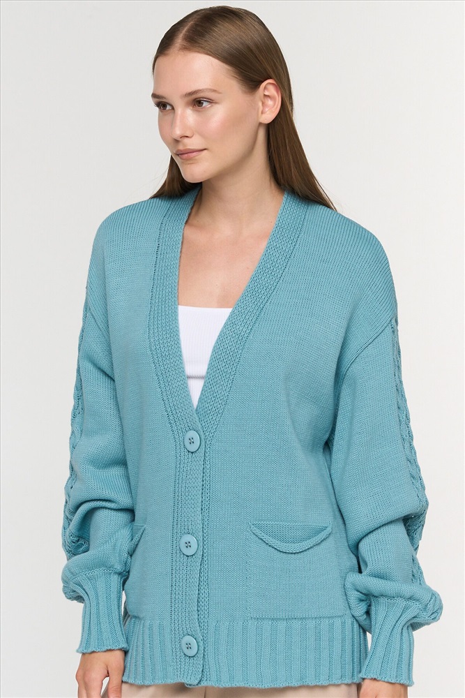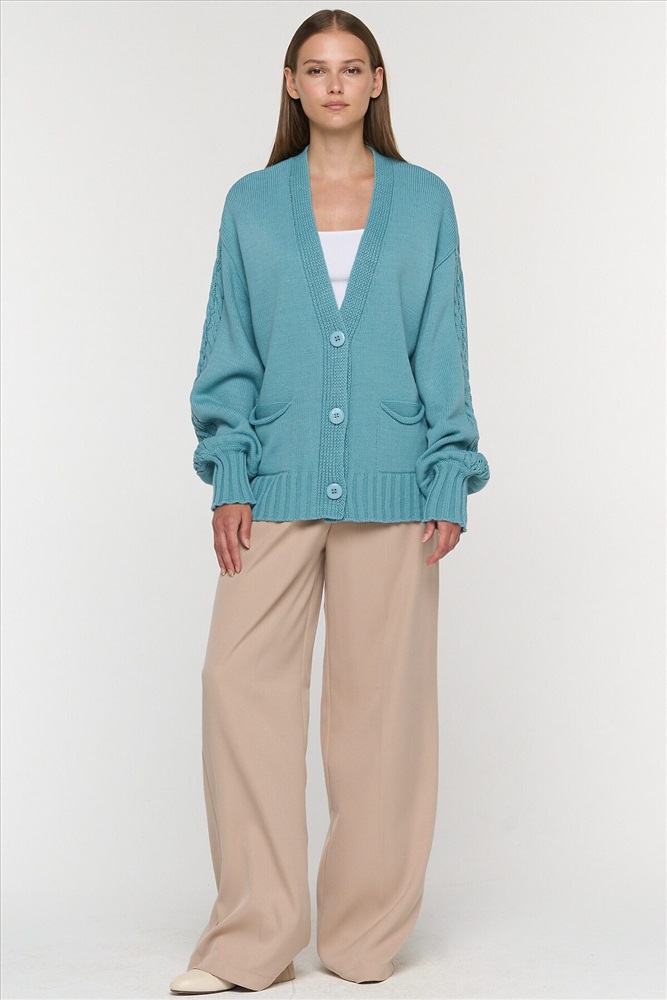 ID товара: 914677 Состав: ПАН - 70%,Шерсть - 30% Сезон: Осень/Зима Длина: 60 Фасон: Свободный крой Рукав: длинные Вид застежки: Пуговицы Вырез горловины: V-образный Тип карманов: Накладные Основная ткань: ПАН Стиль: Повседневный Страна бренда: Россия Страна производства: Россия Женский вязаный кардиган с накладными карманами. Комментарии к товару