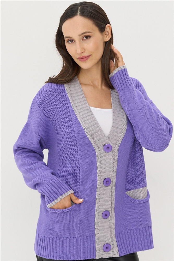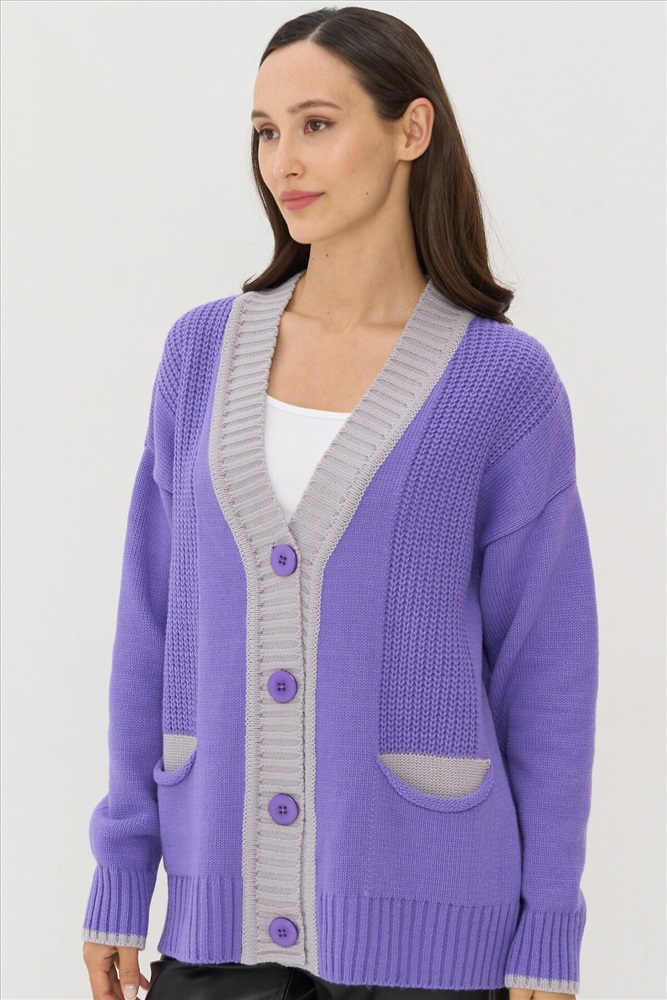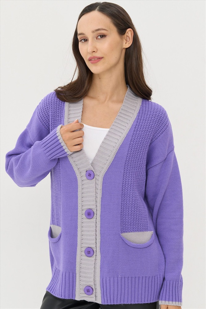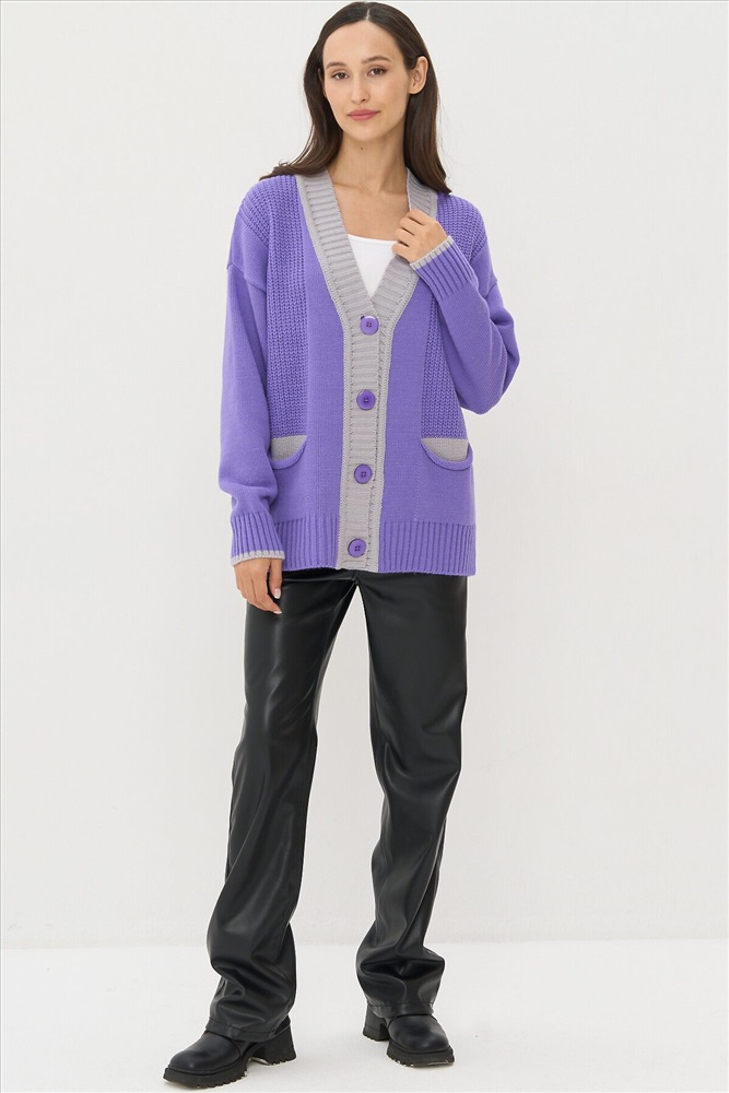 ID товара: 914682 Состав: ПАН - 70%,Шерсть - 30% Сезон: Осень/Зима Длина: 65 Фасон: Свободный крой Рукав: длинные Вид застежки: Пуговицы Вырез горловины: V-образный Основная ткань: ПАН Стиль: Повседневный Страна бренда: Россия Страна производства: Россия Женский вязаный кардиган с накладными карманами. Комментарии к товару