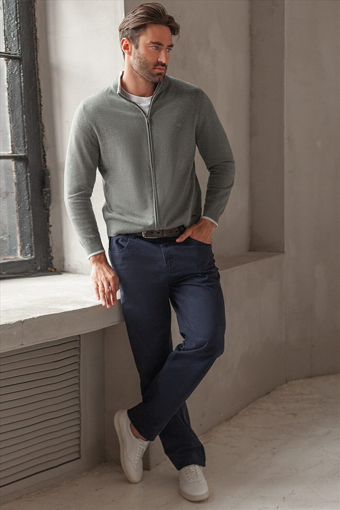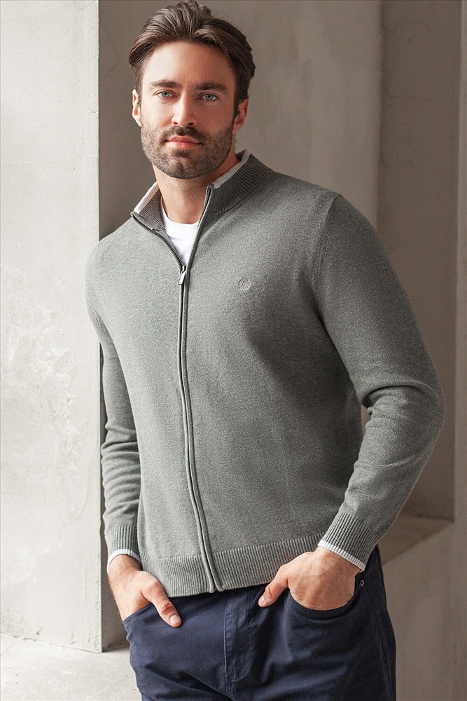 Кардиган на молнии выполнен из гладкой хлопковой пряжи с добавлением нейлона. Модель дополнена вышитым логотипом бренда и контрастными полосками на рукавах и на стойке. Фурнитура цвета темный никель. Изделие хорошо сохраняет тепло, не перегревая тело. Сочетается вторым слоем с футболками, рубашками и поло. Подходит для любого типа фигуры.