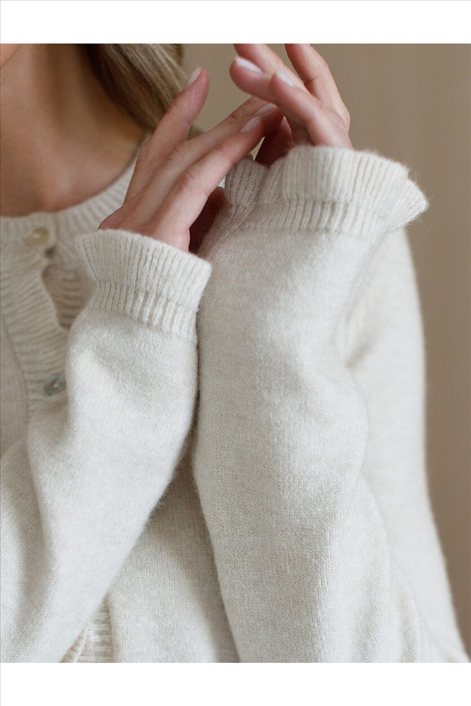 ID товара: 1193808 Состав: 52% ПАН (акрил) 33% Полиэстер 8% Полиуретан 7% Кашемир Сезон: Демисезон Длина: Средняя Фасон: Прямой Рукав: Длинные Вид застежки: Пуговицы Вырез горловины: Округлый Основная ткань: ПАН Стиль: Повседневный Страна бренда: Россия Страна производства: Китай Кардиган выполнен из мягкой меланжевой пряжи. Романтичности прямому силуэту добавляют мягкие воланы по линии пуговиц, на манжетах и краю изделия. Застежка на пуговицы из натурального перламутра. Изделие очень приятное к телу, совершенно не колется и отлично сохраняет тепло. Сочетается в костюме с брюками D38.013, D38.012 и юбкой D36.016 Комментарии к товару