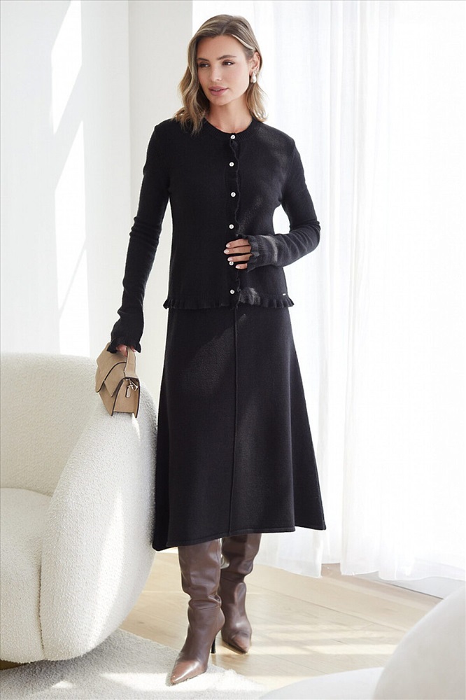 ID товара: 1193810 Состав: 52% ПАН (акрил) 33% Полиэстер 8% Полиуретан 7% Кашемир Сезон: Демисезон Длина: Средняя Фасон: Прямой Рукав: Длинные Вид застежки: Пуговицы Вырез горловины: Округлый Основная ткань: ПАН Стиль: Повседневный Страна бренда: Россия Страна производства: Китай Кардиган выполнен из мягкой пряжи с Романтичности прямому силуэту добавляют мягкие воланы по линии пуговиц, на манжетах и краю изделия. Застежка на пуговицы из натурального перламутра. Изделие очень приятное к телу, совершенно не колется и отлично сохраняет тепло. Сочетается в костюме с брюками D38.013, D38.012 и юбкой D36.016 Комментарии к товару