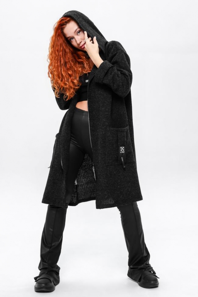 Стильный кардиган длиной миди свободного силуэта, который подчеркнет все ваши достоинства и скроет недостатки фигуры. Кардиган на застёжке молния с двумя накладными карманами и объёмным капюшоном.Длинные широкие рукава, у которых вы сможете сами отрегулировать нужную вам длину завернув их по длине вашей руки. Вы можете носить его,как самостоятельную вещь или сочетать с топом и футболкой.Отлично смотриться с легинсами,джинсами,кожаными брюками. Рекомендуется деликатная стирка!