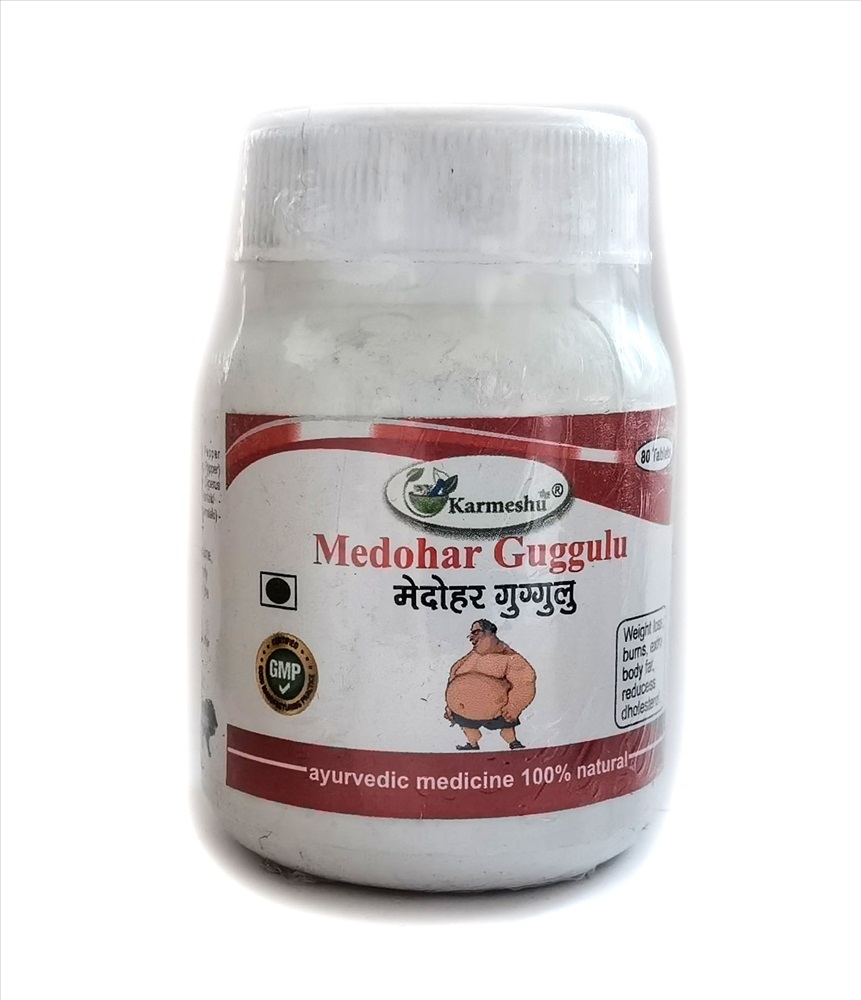 MEDOHAR GUGGULU, Karmeshu (МЕДОХАР ГУГГУЛ, Кармешу)- представлен эффективной аюрведической формулой, направленной преимущественно на устранение проблем с весом. В состав входят исключительно натуральные компоненты, которые обладают рядом уникальных полезных свойств. Действие Препарат улучшает пищеварение, положительно влияет на желчную систему, снижает всасываемость жира и регулирует уровень липидов в крови. Помимо этого, данное средство выступает профилактикой атеросклероза, стимулирует деятельность метаболизма и способствует нормализации уровня холестерина.