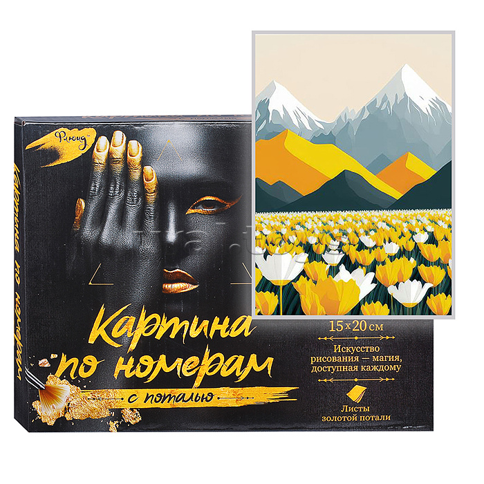 Картина по номерам 15х20 "Цветущие поля в горах" с поталью (12 цветов)