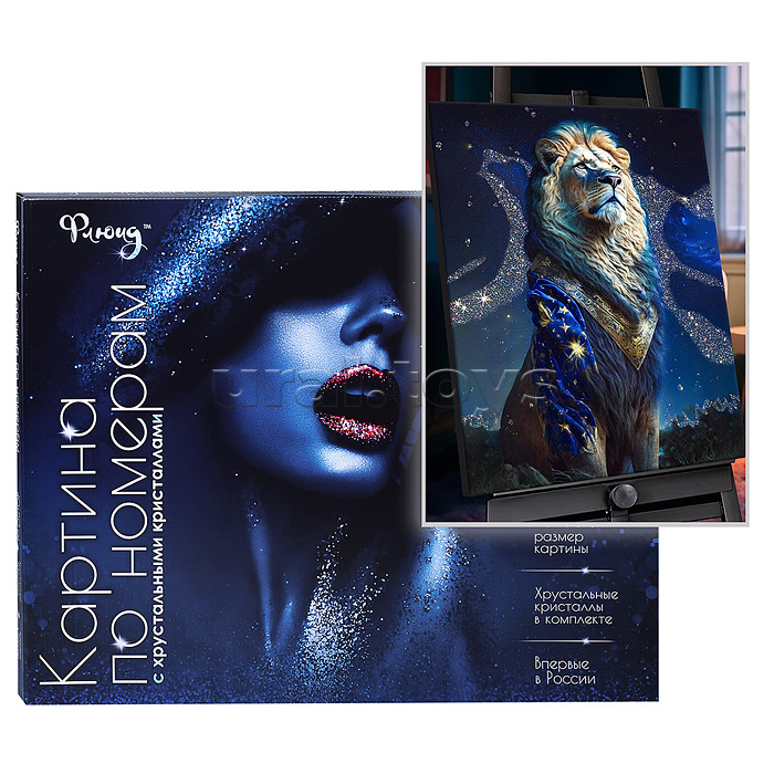 Картина по номерам 40х50 "Царь зверей" с кристаллами из хрусталя (20 цветов)