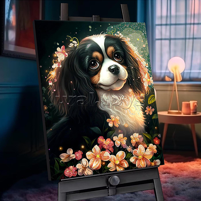 Картина по номерам 40х50 "Чарльз спаниель" с кристаллами из хрусталя (29 цветов)