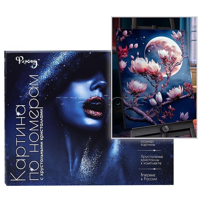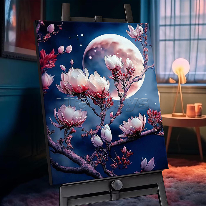 Картина по номерам 40х50 "Цветущая магнолия" с кристаллами из хрусталя (19 цветов)