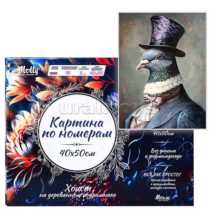 Код: 492013 Штрихкод: 4660011901640 Страна производитель: Россия Размеры упаковки: 42 x 52 x 4 см Количество в коробке: 1 В наборе: - холст на деревянном подрамнике 40х50 см. - кисти 3 шт. - акриловые краски. - фурнитура для крепления. Соответствует требованиям безопасности продукции. Для детей от 14 лет. Комментарии к товару