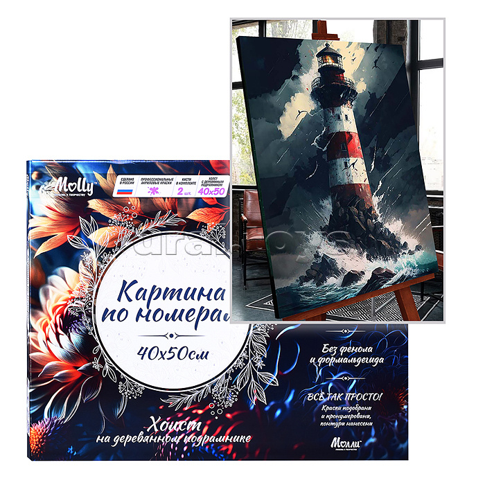 Картина по номерам 40х50 "Морской маяк" со светящейся краской (22 цвета)