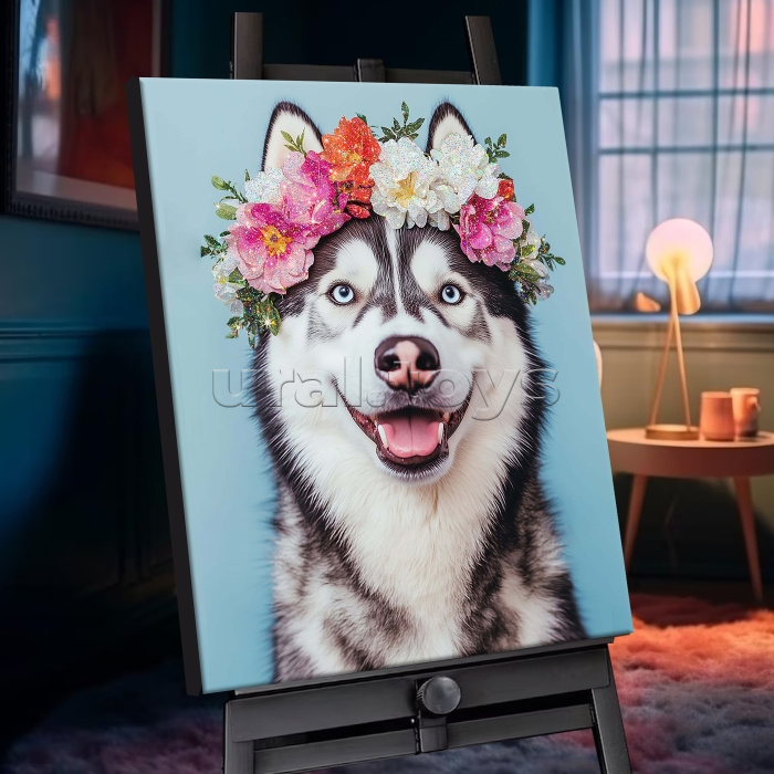 Картина по номерам 40х50 "Очаровательный хаски" с кристаллами из хрусталя (22 цвета)