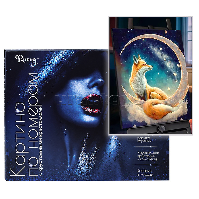 Картина по номерам 40х50 "Огненная лиса" с кристаллами из хрусталя (25 цветов)