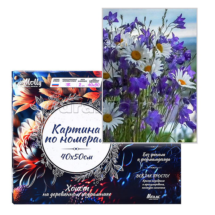 Картина по номерам 40х50 "Полевые цветы" (17 цветов)