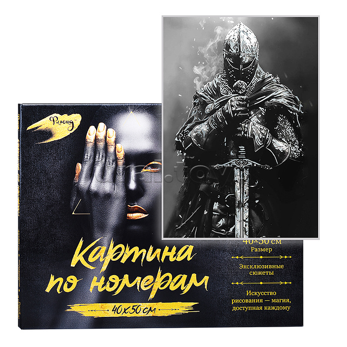 Картина по номерам 40х50 "Рыцарь средневековья" с поталью платина (9 цветов)