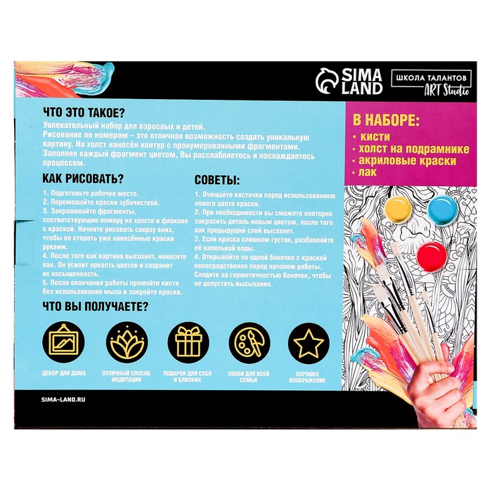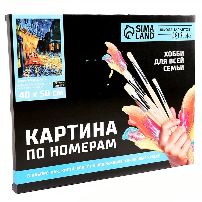 Габариты: 3 x 51 x 41 Страна: Россия В боксе: 22 шт Состав: Дерево, текстиль, краска, кисть Материалы: дерево, текстиль, краска, кисть Фасовка: по 1 шт Индивидуальная упаковка: Картонная коробка / упаковка Сертификат: ЕАС Количество цветов: 24 Для кого: Унисекс Размер, см: 40 х 50 Возраст: Для взрослых Тематика: Города и архитектура Ориентация изображения: Вертикально Тип холста: Холст на подрамнике Вид: Холст под роспись Темпер. ограничение НЕ НИЖЕ ℃: -50 Уровень сложности: Сложный Комплектация набора: С кистью (-ями), С красками Фиксированная цена: Да Набор для рисования станет находкой для людей, которые хотят творить! Специально разработанная уникальная серия росписи по номерам станет верным помощником начинающим художникам, с помощью которой они будут создавать настоящие шедевры изобразительного искусства! Написанная своими руками картина украсит интерьер или станет прекрасным подарком для родных и близких людей. Картина по номерам на холсте с подрамником «Ночная терраса кафе» Винсент ван Гог, 40×50 см понравится и детям, и взрослым. Холст разделён на множество мелких фрагментов, на каждом из которых указано число, соответствующее цвету, которым нужно закрасить данный участок. В набор входят все необходимые оттенки красок, каждый из которых пронумерован. Поначалу, когда вы только возьмёте холст в руки, будет сложно представить, что за чудесная картина получится в итоге! Но уверяем вас, результат превзойдёт все ожидания. Полотно с множеством оттенков, теней и красок будет выглядеть так, словно оно из музея. Раскрашивание по номерам покорило сердца миллионов людей по всему миру, ведь с ним каждый может создать шедевр! Присоединяйтесь к этому увлекательному занятию, творите и наслаждайтесь результатами. Комплектация