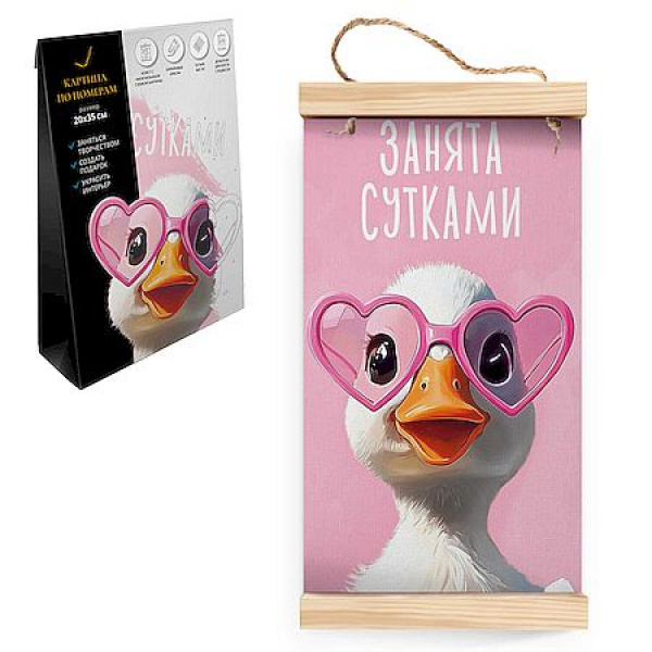 Набор для творчества Картина по номерам на свертке арт. 71271 / 50 УТЕНОК В ОЧКАХ, размер: 20х35 см, (10 цвета (-ов), холст с напечатанной схемой рисунка, краски акриловые на водной основе (упакованы в вакуумную упаковку), кисти художественные с ворсом из нейлона – 4 шт., деревянные держатели с подвесом, контрольный лист с нанесенной схемой в комплекте, картонная коробка)