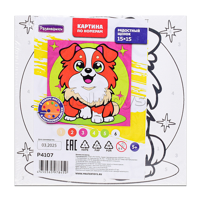 Код: 491195 Штрихкод: 4650365978450 Страна производитель: Россия Размеры упаковки: 15 x 1.5 x 15 см Количество в коробке: 20 • В наборе: - холст на деревянном подрамнике (15х15 см.) - акриловые краски (6 цветов) - кисть. • Соответствует требованиям безопасности продукции. • Для детей от 5 лет. Комментарии к товару