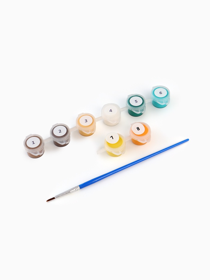 На холст нанесена схема, где пронумерован каждый сектор. Номер — цвет, написанный на баночке с краской. Нужно только раскрасить каждый сектор в соответствующий цвет. Картина может быть, как для личного пользования, так и в качестве подарка! Комментарии к товару