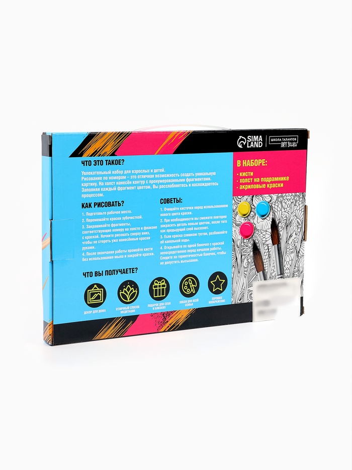 Габариты: 31 x 21 x 2,5 Страна: Китай В боксе: 50 шт Состав: Акриловые краски, дерево, клей, металл, пластик, полиэстер Материалы: акриловые краски, дерево, клей, металл, пластик, полиэстер Фасовка: по 1 шт Индивидуальная упаковка: Картонная коробка / упаковка Габариты товара: 31 см × 21 см × 2,4 см Сертификат: Не подлежит сертификации Для кого: Унисекс Размер, см: 20 х 30 Возраст: От 7 лет Тематика: Цветочно-растительная, Растительный орнамент Ориентация изображения: Вертикально Вид: Холст под роспись Уровень сложности: Средний Комплектация набора: С кистью (-ями), С красками Набор для рисования станет находкой для людей, которые хотят творить! Специально разработанная уникальная серия росписи по номерам станет верным помощником начинающим художникам, с помощью которой они будут создавать настоящие шедевры изобразительного искусства! Написанная своими руками картина украсит интерьер или станет прекрасным подарком для родных и близких людей. Картина по номерам с подрамником и поталью «Тропики», 20×30 см понравится и детям, и взрослым. Холст разделён на множество мелких фрагментов, на каждом из которых указано число, соответствующее цвету, которым нужно закрасить данный участок. В набор входят все необходимые оттенки красок, каждый из которых пронумерован. Поначалу, когда вы только возьмёте холст в руки, будет сложно представить, что за чудесная картина получится в итоге! Но уверяем вас, результат превзойдёт все ожидания. Полотно с множеством оттенков, теней и красок будет выглядеть так, словно оно из музея. Раскрашивание по номерам покорило сердца миллионов людей по всему миру, ведь с ним каждый может создать шедевр! Присоединяйтесь к этому увлекательному занятию, творите и наслаждайтесь результатами. Комментарии к товару