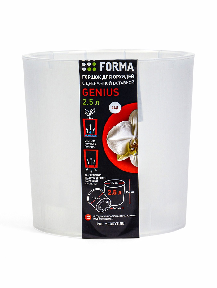 - Универсальный объём 2,5 л: Подходит для средних комнатных растений: орхидей, фиалок, суккулентов или молодых декоративнолистных культур.