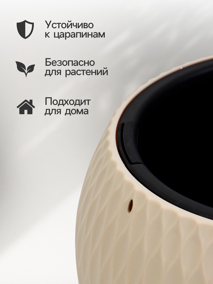 Кашпо «Жемчужина» — это гармония практичности и теплого дизайна. Его нежный бежевый оттенок добавит вашему интерьеру домашнего уюта, а продуманная конструкция обеспечит комфорт растениям. Выбирайте простое и надежное решение по привлекательной цене.