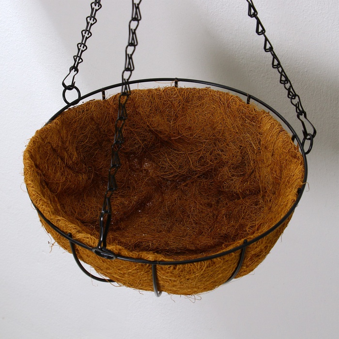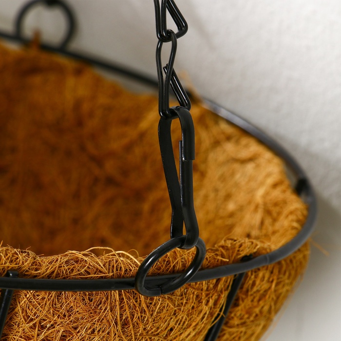 Подвесное кашпо станет отличным выбором для декорирования вашего сада или балкона. Оно гармонично сочетает в себе элегантность металлической формы полусферы и естественность кокосового вкладыша, создавая уют и живую атмосферу.