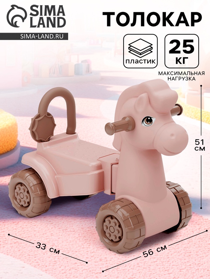 Габариты: 64 x 32 x 52 Доставка: Платная Страна: Россия В боксе: 2 шт Состав: Пластик Материалы: пластик Фасовка: по 1 шт Индивидуальная упаковка: Без упаковки Сертификат: ЕАС Цвет: Розовый Для кого: Унисекс Возраст: От 1 года Количество колёс: 4 Maксимальная нагрузка, кг: 25 Высота сиденья, см: 25 Вид упаковки: Без упаковки Символ года: Символ года 2026 (Лошадь) Материал колёс: Пластиковые Ручка для родителей: Нет Материал: Пластик Дополнительные функции: Без функций Вид каталки: Толокары Руль: Без руля Особенности: Без особенностей Форма: Лошадь С раннего возраста все детки мечтают о своём первом автомобиле! Каталка в форме милой лошадки с большими глазками – замечательный подарок малышу! Основные преимущества:
