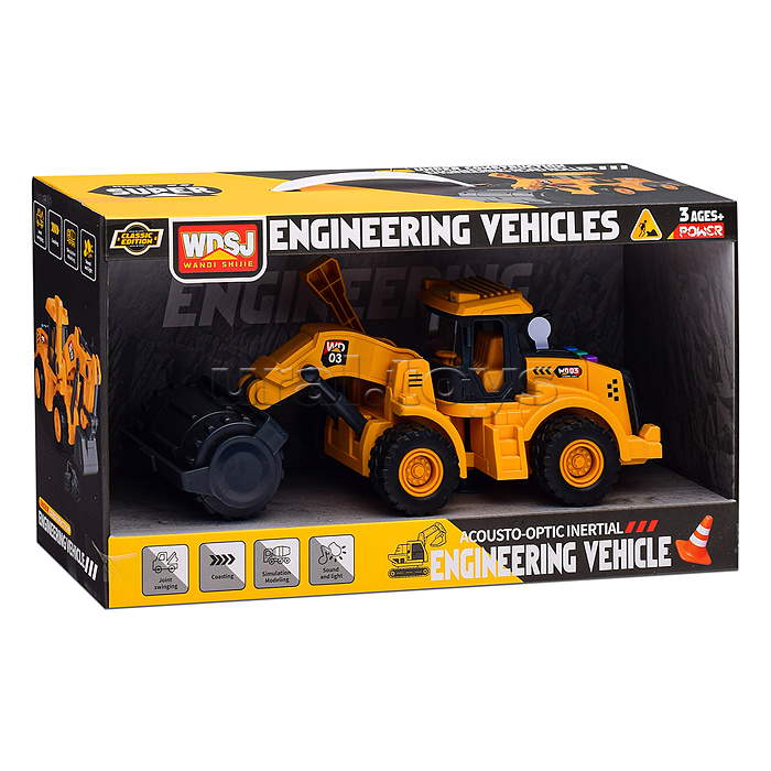 • Размеры игрушки: 28х9х10.5 см. • Инерционный механизм движения. • Эффекты (при нажатии кнопок на корпусе): - звук мотора. - весёлые мелодии. - мигание ламп на крыше. • Свет и звук работают от 3-х батареек "LR44" (входят в комплект для демонстрации) • Материал: пластик. • Соответствует требованиям безопасности продукции. • Для детей от 3-х лет.
