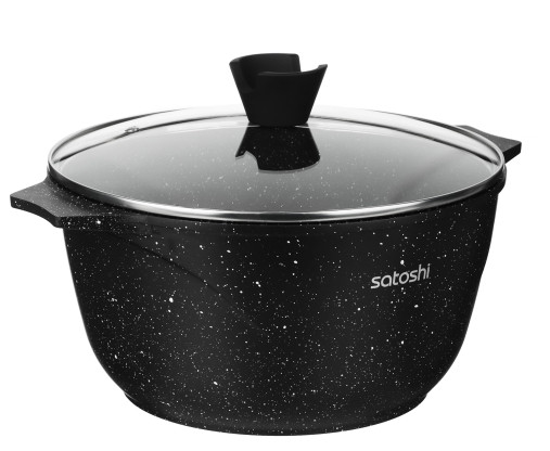 Казан SATOSHI «Монфор» размером 24х13 см и объемом 4,8 л из литого алюминия со стеклянной крышкой с пароотводом – это качественная долговечная посуда для приготовления блюд методом тушения и длительного томления.