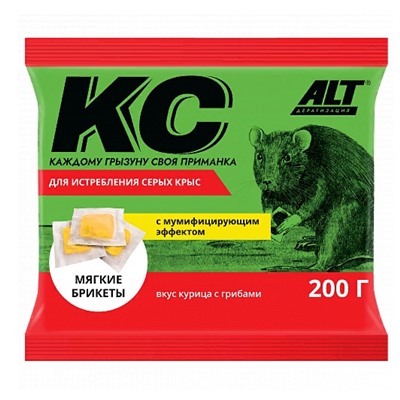 Разработанная с учетом вкусовых предпочтений серых крыс приманка в виде тесто-сырных брикетов. Предназначена для уничтожения серых и чёрных крыс, домовых мышей в помещениях и на открытой местности. Для гибели серой крысе достаточно однократного поедания тесто-сырного брикета. В состав мягких брикетов, помимо действующего вещества, входят как привлекатели свежее тесто с сыром, подсолнечное масло и ваниль, каждый брикет отдельно завернут в съедобную рисовую бумагу – это обеспечивает исключительную привлекательность и 100 % поедаемость приманки крысами, а содержащиеся в составе добавки, отпугивающие животных – уменьшают вероятность потребления приманки нецелевыми животными. Постепенное развитие симптомов отравления не вызывает у крыс настороженного отношения к брикетам, что позволяет предотвратить избегания приманки грызунами. Комментарии к товару