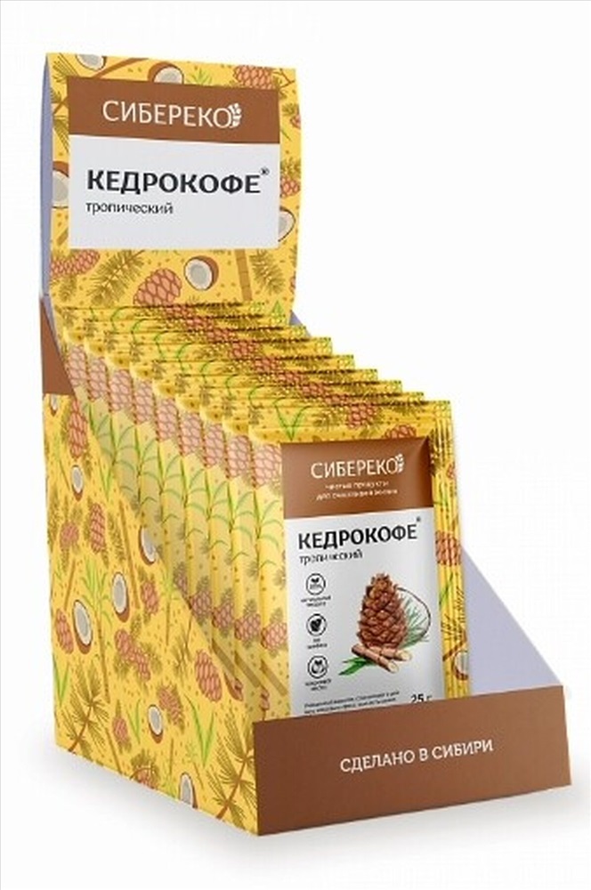 Кедрокофе Тропический шоу-бокс №10*25г Состав: молотый кедровый орех,растительные сливки на основе кокосового масла,нерафинированный тростниковый сахар