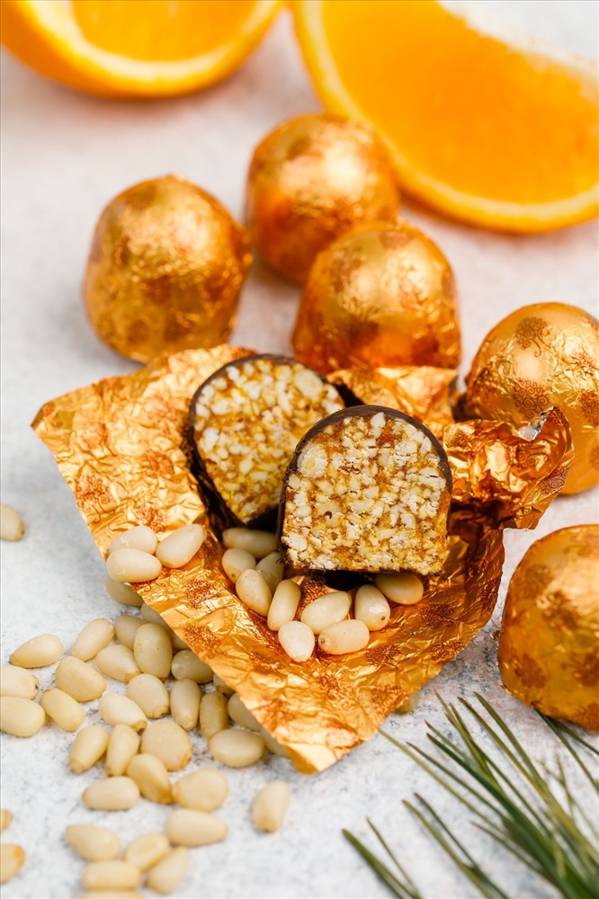 В этом уникальном шоу-боксе весом 540 г вы найдете незабываемые вкусовые ощущения, где яркий и свежий апельсин встречается с теплой и пряной корицей. Эти натуральные компоненты придают грильяжу особую изюминку и делают его настоящим лакомством для гурманов. А добавление темного шоколада без заменителей какао-масла и молочных жиров создает гармоничную и насыщенную текстуру, которая так приятно тает во рту.