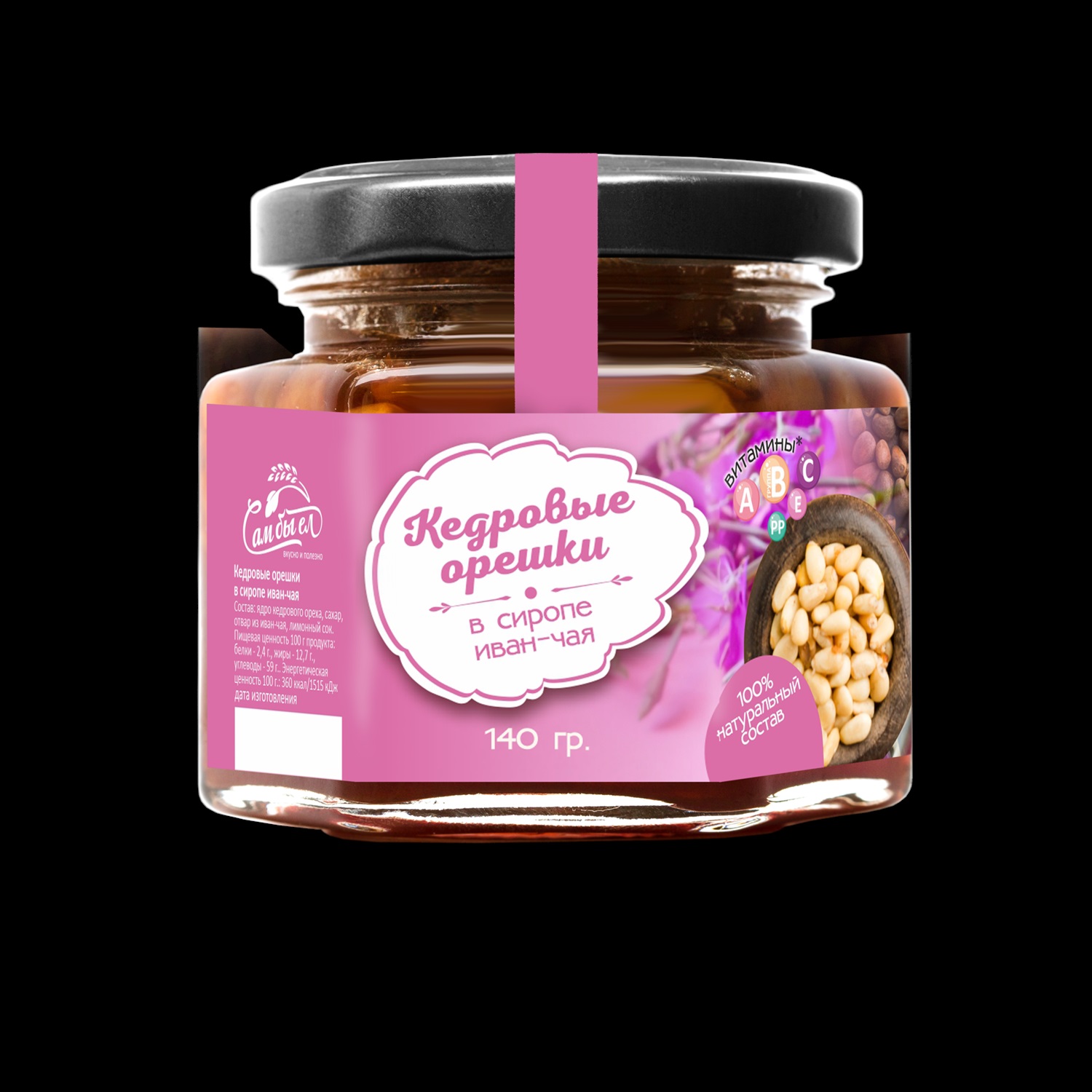 Белки, г/100 г: 2,4 Углеводы, г/100 г: 59 Жиры, г/100 г: 12,7 Состав: Ядро кедрового ореха, сахар, отвар иван-чая, натуральный лимонный сок. Торговая марка: Сам бы ел Энергетическая ценность, ккал/100 г: 356 Упаковка: стеклянная тара Срок годности в мес.: 12 Условия хранения: Хранить при температуре от +2 до +25 градусов Цельсия и относительной влажности не более 75%. Штрих-код товара: 7930080874341 Вес нетто товара, г: 140 Стандарт производства: СТО 24618466-003-2019 Габариты товара ШхГхВ, см: 6,3х6,2х7 Вес брутто товара, г: 277 Производитель: ООО Алекс-2 Количество товара в групповой упаковке, шт: 12 Штрих-код групповой упаковки: 7930080874358 Габариты групповой упаковки ШхГхВ, см: 22,5х8х27,5 Вес групповой упаковки, г: 3404 Комментарии к товару
