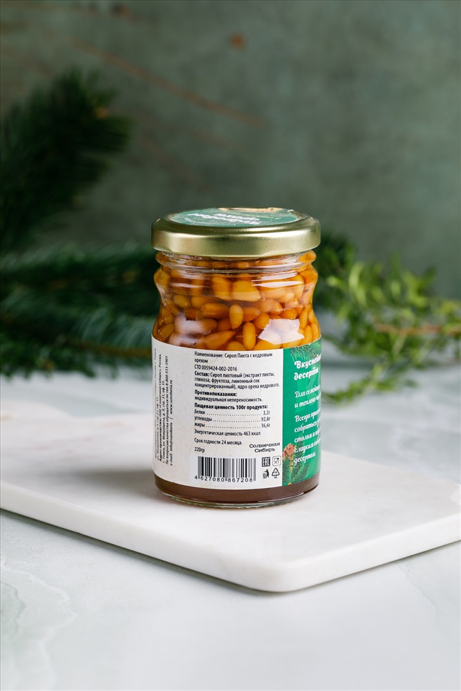 Кедровый орех в сиропе из Пихты на фруктозе от бренда "Солнечная Сибирь" – это уникальный продукт, который подарит вам не только удовольствие, но и истинную пользу. Созданный с использованием натуральных сиропов, получаемых из вытяжек сибирских растений, данный сироп включает в себя только лучшие ингредиенты. Технология, разработанная нашими специалистами, позволяет сохранить все полезные вещества и натуральный вкус, что делает этот сироп идеальным дополнением к вашему рациону.