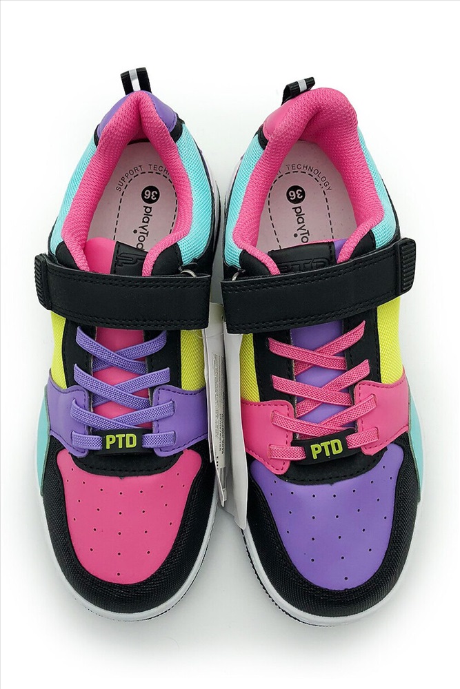 Трендовые разноцветные кеды для девочки подростка. Кроссовки выполнены из искусственной кожи, обладающей высокими эксплуатационными свойствами, и дышащего текстиля. Носочная часть усилена специальным защитным материалом. Модель имеет разное цветовое сочетание в каждой полупаре, что создает эффект, что перепутали разные пары при обувании. В носочной части обуви стоит текстильная подкладка c высоким содержанием хлопка 80%, которая обладает высокой гигроскопичностью. В пяточной части обуви текстильная подкладка обладает хорошей износостойкостью. Эластичные шнурки и липучка создают удобство при обувании. Профилированная съемная стелька из свиной кожи с анатомической формой подсводника обеспечивает правильную нагрузку на стопу. Формоустойчивый задник поддерживает стопу в правильном положении. Эргономичная форма колодки обеспечивает правильное формирование стопы ребенка. Подошва из ТПР гибкая, не скользит и устойчива к истиранию. Имеются светоотражающие элементы.