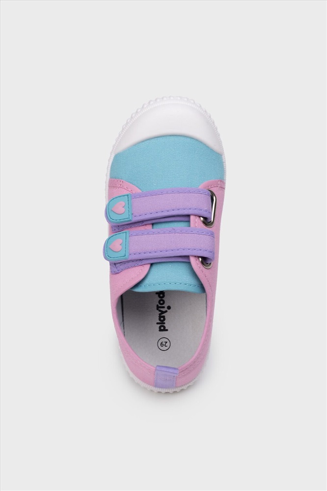Текстильные детские кеды с липучками для девочки. Две застежки-липучки позволяют ребенку обуваться самостоятельно. В обуви используется текстильная подкладка c 80% содержанием хлопка, которая обладает высокой гигроскопичностью. Стелька выполнена из свиной натуральной кожи и имеет анатомический элемент для поддержания свода стопы. Стелька съемная. Облегченная подошва из ПВХ гибкая, не скользит и устойчива к истиранию.