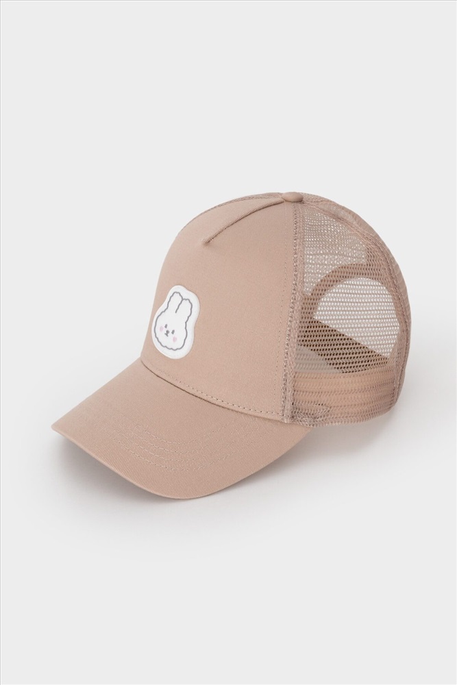 Кепка для девочки из текстиля и сетки. Спереди украшена оригинальной нашивкой. Регулируется по ширине головы и фиксируется на затылке с помощью пластиковой застёжки.