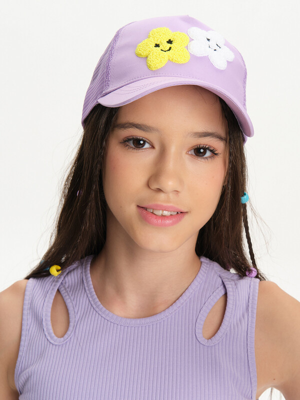 Кепка для девочки из тонкого хлопка с сеткой, эта кепка подарит комфорт и уверенность в любом приключении. Кепка детская бейсболка декорирована тафтинговой вышивкой - тренд на тактильность. Эта яркая деталь придаст образу вашей дочери особый шарм и индивидуальность, а малышке понравится выделяться среди других.