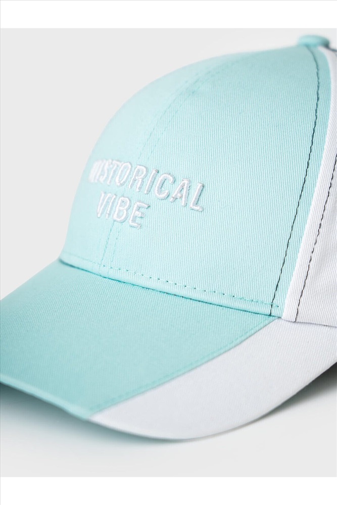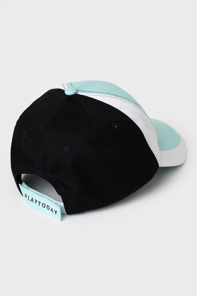 ID товара: 1240440 Состав: 100% хлопок Сезон: Весна/Лето Бейсболка для девочки подростка, выполненная в спортивном стиле. Основа — из мягкого хлопкового текстиля нежно-бирюзового цвета, с контрастными частями. Впереди — объемная вышивка, сзади — черный логотип. Козырек изогнутый. Размер регулируется с помощью удобной застежки на липучке. Комментарии к товару
