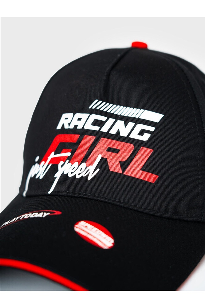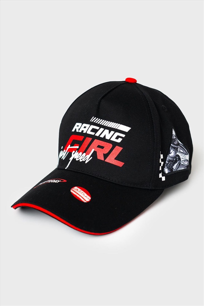 ID товара: 1242798 Состав: 100% хлопок Сезон: Весна/Лето Бейсболка для девочки подростка в спортивном стиле. Спереди расположен стильный принт, а по бокам — две нашивки с изображением мотоциклистки. Козырек изогнутый. Размер можно регулировать с помощью пластиковой застежки на кнопки сзади. Люверсы для вентиляции. Комментарии к товару