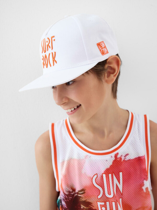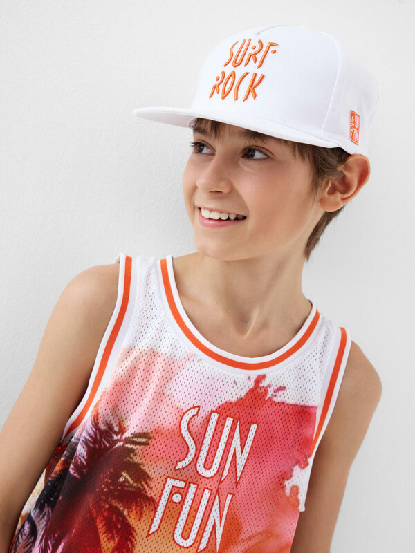 Производитель: PlayToday Бейсболка для мальчика подростка. Модель выполнена в классической форме с прямым козырьком. Спереди расположен объёмный вышитый принт. Слева — декоративный бейдж с логотипом. Сзади — пластиковая застежка на кнопках, позволяющая регулировать размер. Отверстия для вентиляции.