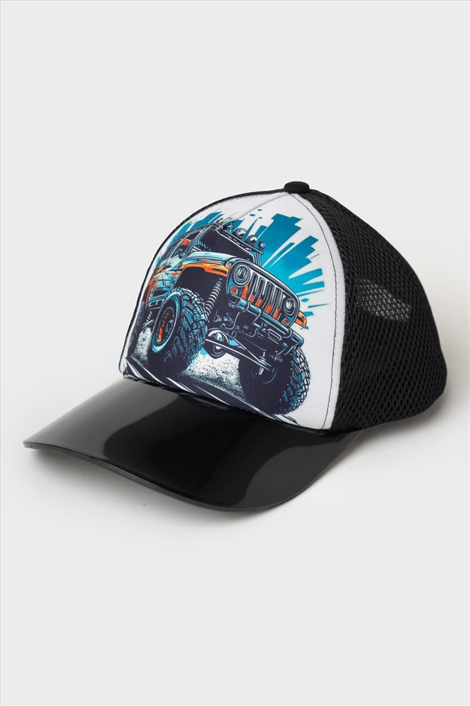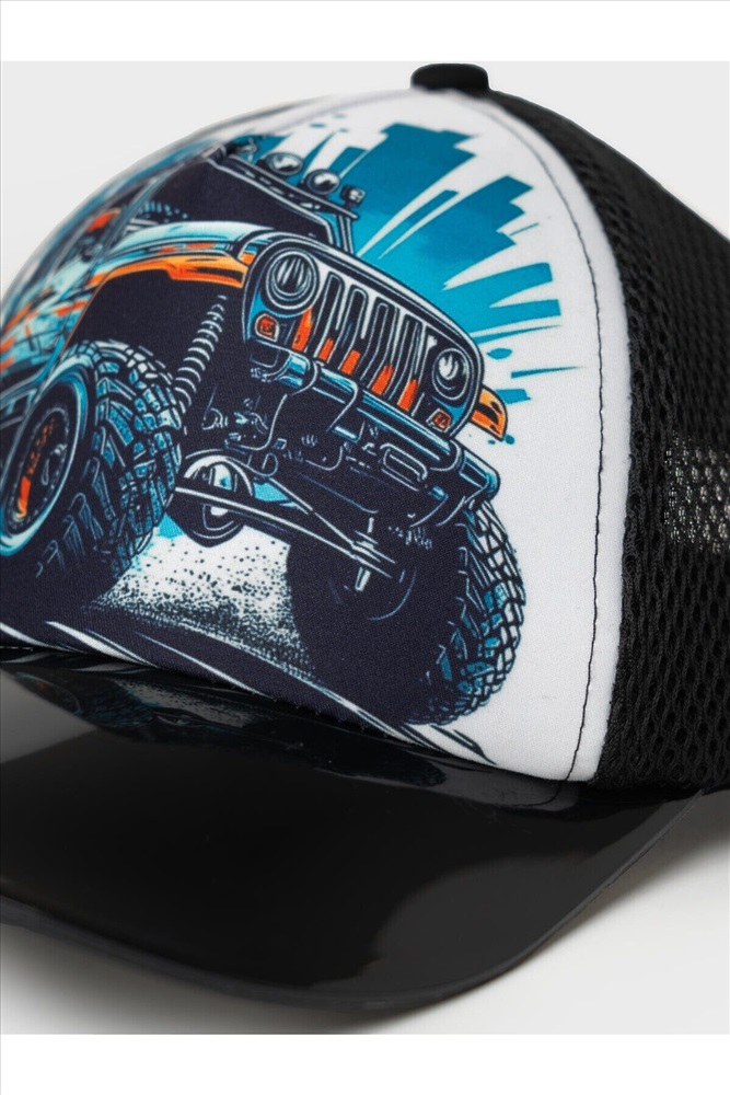 ID товара: 1241069 Состав: 60% хлопок, 40% полиэстер, 100% полиэстер Сезон: Весна/Лето Стильная бейсболка для мальчика подростка. Модель с ярким принтом — спереди изображён внедорожник. Передняя часть выполнена из плотной хлопковой ткани с цветной печатью, а боковые и задние панели — из черной сетки для вентиляции. Жесткий прямой козырек окрашен с градиентом от черного к бирюзовому. Сзади — удобная застежка на липучке для регулировки размера. Комментарии к товару