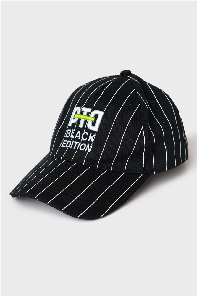 ID товара: 1242799 Состав: 100% хлопок Сезон: Весна/Лето Бейсболка для мальчика подростка. Модель выполнена из чёрного хлопкового текстиля с контрастными белыми полосами. На передней панели — объёмная вышивка с логотипом PTD. Козырёк изогнутый. Сзади — пластиковая застёжка на кнопках с регулировкой размера. Вентиляционные отверстия. Комментарии к товару