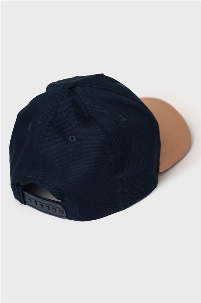 ID товара: 1242821 Состав: 100% хлопок Сезон: Весна/Лето Бейсболка для мальчика подростка. Изготовлена из плотного хлопкового тёмно-синего текстиля с контрастным бежевым козырьком. На передней части расположен крупный принт. Козырек изогнутый. Сбоку — вертикальный ярлык. Застежка сзади пластиковая на кнопках, регулируется по объему. На макушке — обтянутая пуговка, имеются вентиляционные люверсы. Комментарии к товару