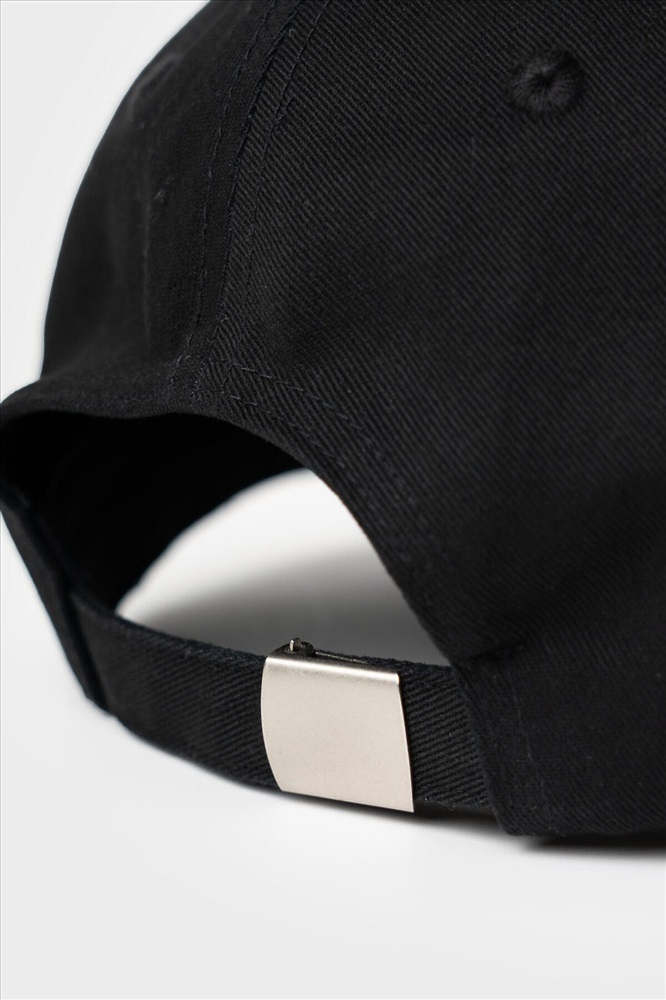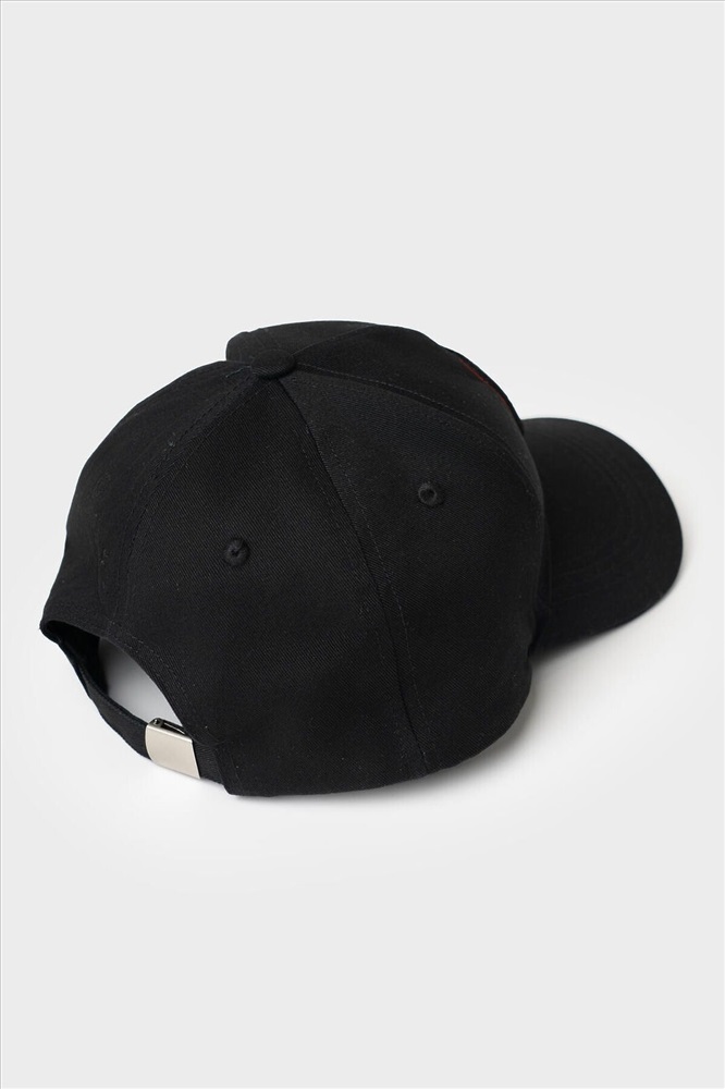 ID товара: 1240184 Состав: 100% хлопок Сезон: Весна/Лето Мужская бейсболка из черного хлопкового текстиля с жестким изогнутым козырьком. На передней части вышит крупный логотип, а сбоку — фирменный силиконовый шеврон. Козырек украшен серым кантом, подчеркивающим форму. Размер можно отрегулировать с помощью металлической пряжки сзади. На верхней части — небольшая пуговица и вентиляционные отверстия. Комментарии к товару