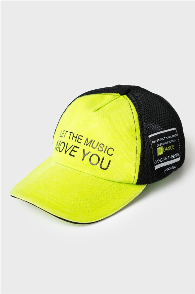 Бейсболка для мальчика подростка. Передняя часть выполнена из плотной хлопковой ткани, задняя — из дышащей сетки. Жесткий изогнутый козырёк декорирован чёрным кантом и декоративными строчками. На передней панели размещён яркий принт, сбоку — шеврон с мотивационной фразой и логотипом. Застёжка пластиковая,, регулируется по размеру с помощью кнопок сзади.